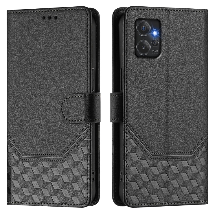 Funda de Cuero RFID con Relieve de Panal para Motorola Moto G Power 2023 5G (Negra)
