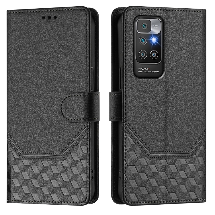 Funda de Cuero Rfid con Relieve de Panal para Redmi 10 2022/2021 (Negra)