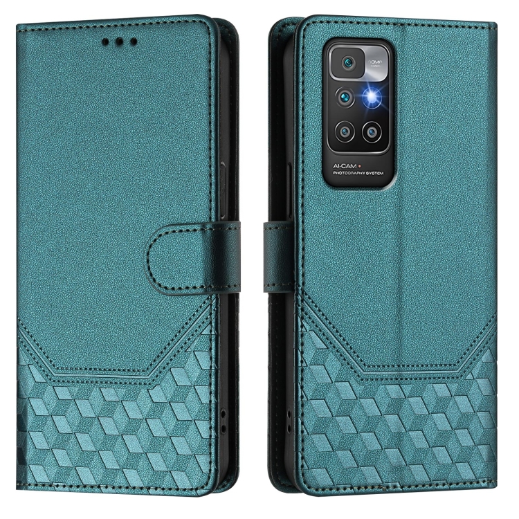 Funda de Cuero Rfid con Relieve de Panal para Redmi 10 2022/2021 (Verde Pavo Real)