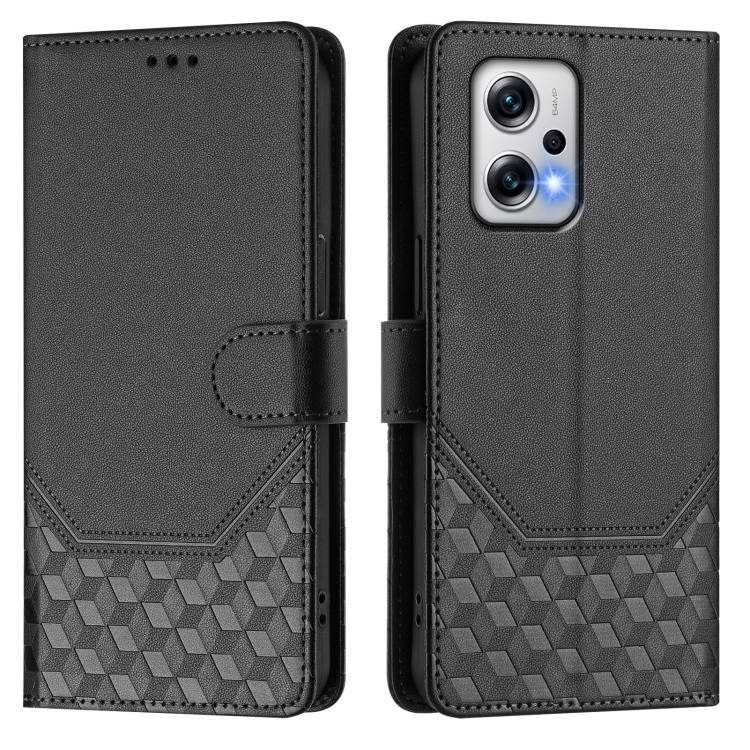 Funda de Cuero Rfid con Relieve de Panal para Redmi K50I/Note 11T Pro+ 5G (Negra)