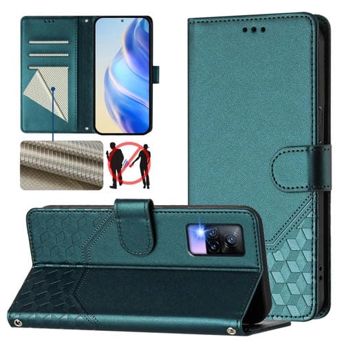 Funda de Cuero Rfid con Relieve de Panal para Vivo V20/Y73 2021 (Verde Pavo Real)