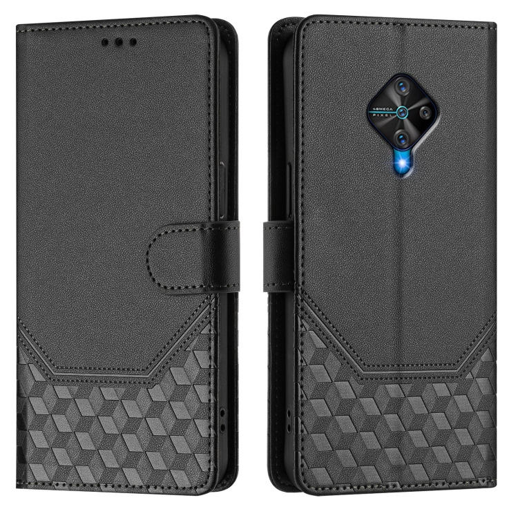 Funda de Cuero Rfid con Relieve de Panal para Vivo Y51A 2021/Y33 4G 2021 (Negra)
