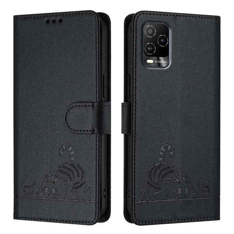 Funda Cuero RFID Blu View 5 Pro Relieve Rata y Gato con Cordón (Negro)