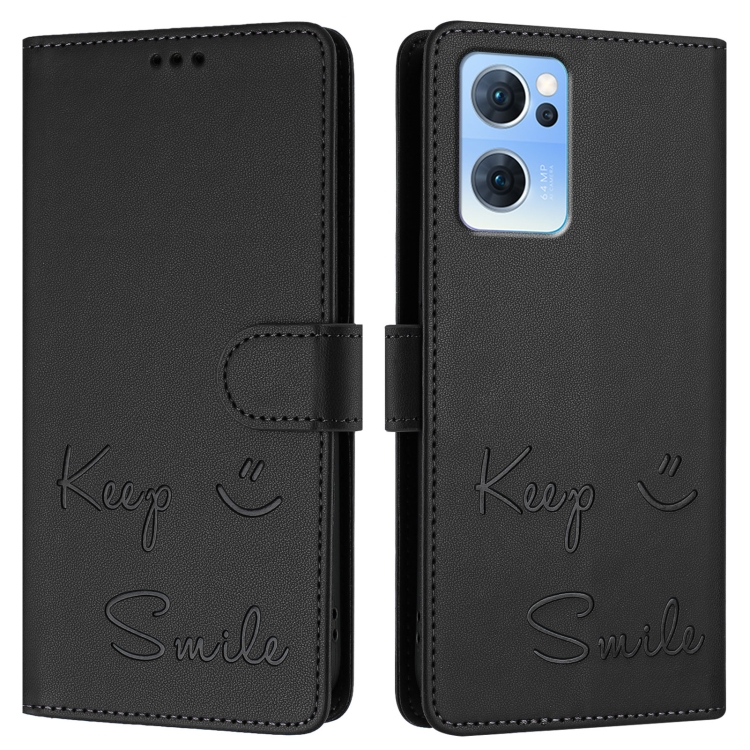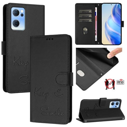 Funda de Cuero Rfid con Relieve de Sonrisa Global para Oppo Reno7 5G (Negra)