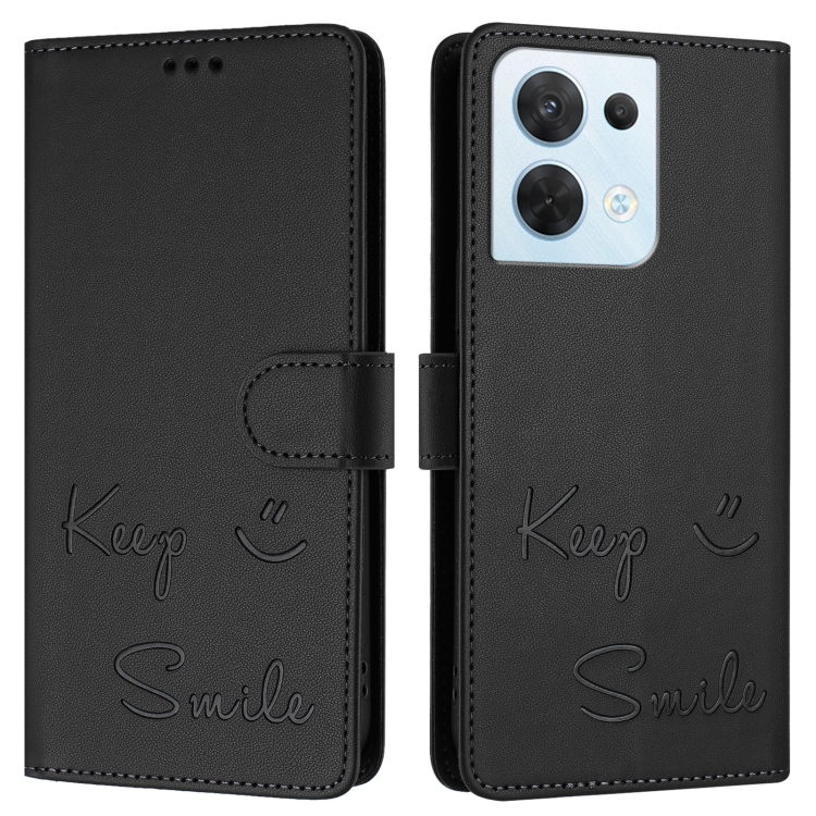 Funda de Cuero Rfid con Relieve de Sonrisa Global para Oppo Reno8 5G (Negra)