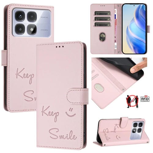 Funda de Cuero Rfid con Relieve de Sonrisa Global para Redmi K70 Ultra 5G (Rosa)