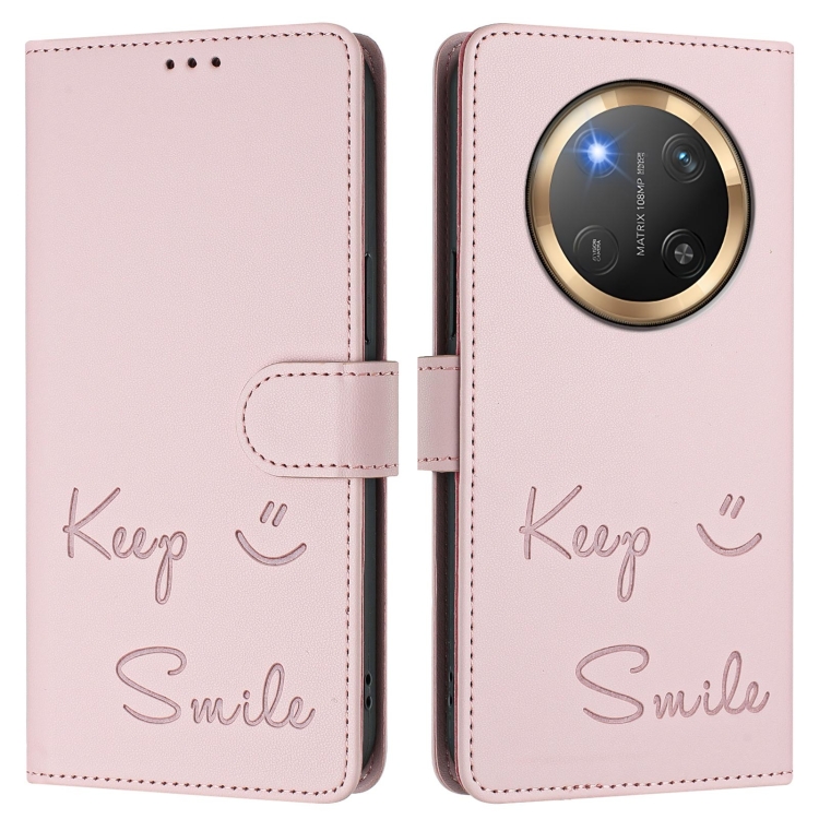 Funda de Cuero Rfid con Relieve Sonrisa Global para Honor X9C 5G (Rosa)