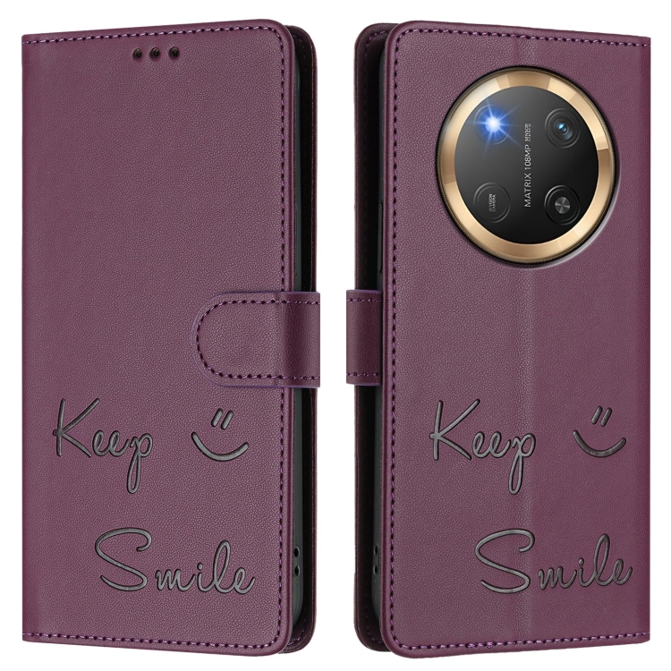 Funda de Cuero Rfid para Honor X9C 5G con Relieve de Sonrisa Global (Violeta)