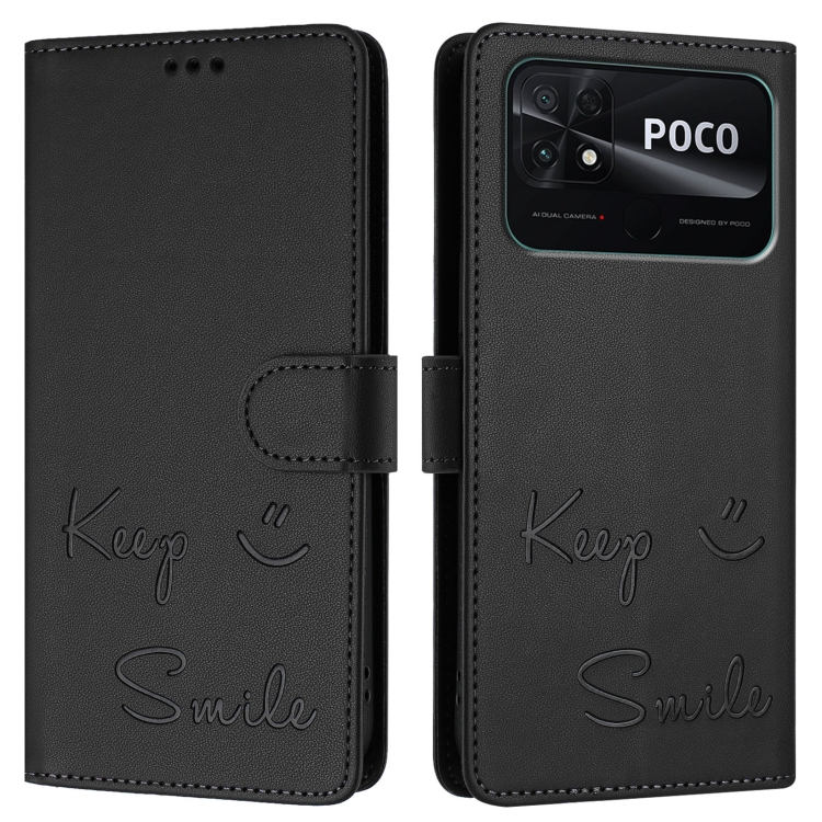 Funda de Cuero Rfid con Relieve de Sonrisa India para Redmi 10C/Redmi 10 2022 (Negra)