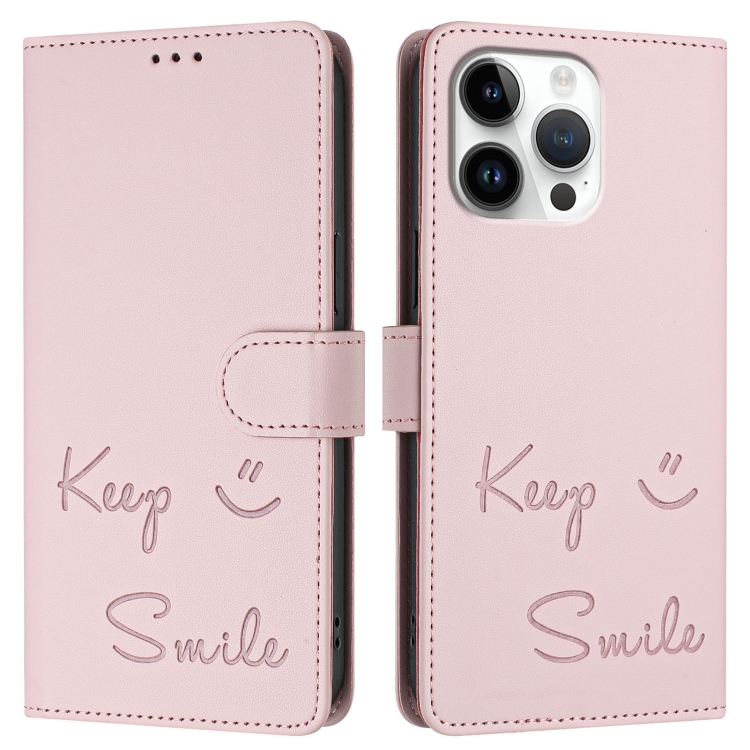Funda de Cuero Rfid con Relieve de Sonrisa para iPhone 16 Pro Max (Rosa)