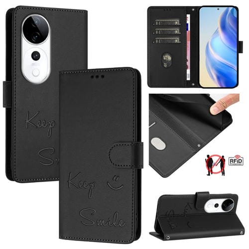 Funda de Cuero Rfid con Relieve de Sonrisa para Teléfono Vivo S19 Pro (Negra)