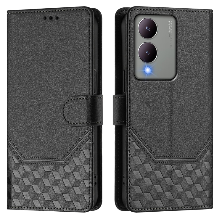 Funda de Cuero Rfid con Relieve En Panal Global para Vivo Y17S (Negra)