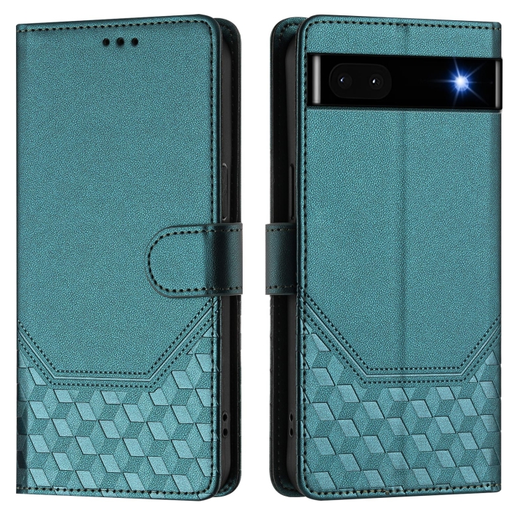 Funda de Cuero Rfid con Relieve en Panal para Google Pixel 6A (Verde Pavo Real)