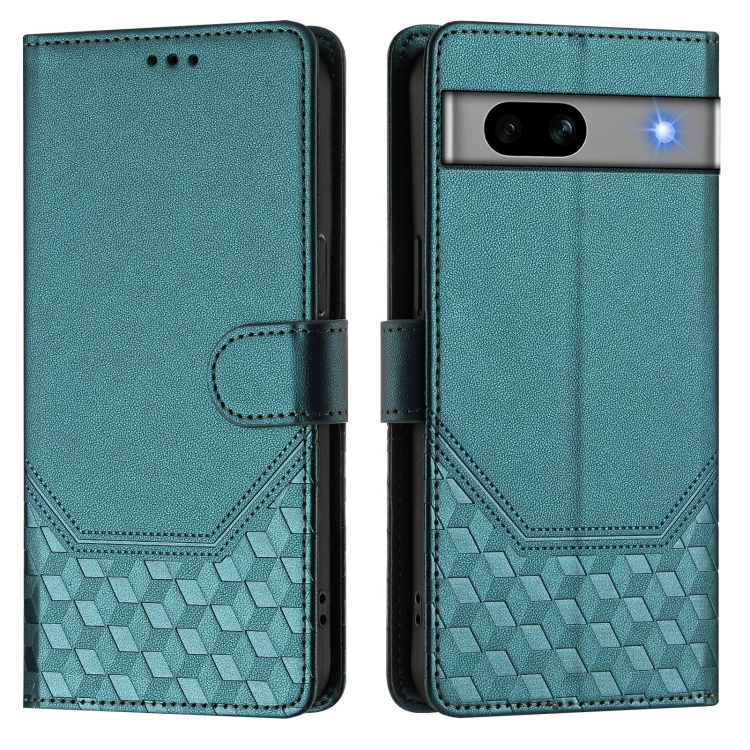 Funda de Cuero Rfid con Relieve en Panal para Google Pixel 7A (Verde Pavo Real)
