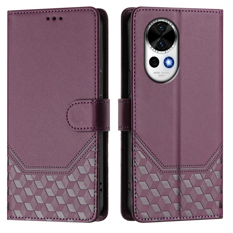 Funda de Cuero Rfid con Relieve en Panal para Huawei Nova 13/Nova 12 (Violeta)