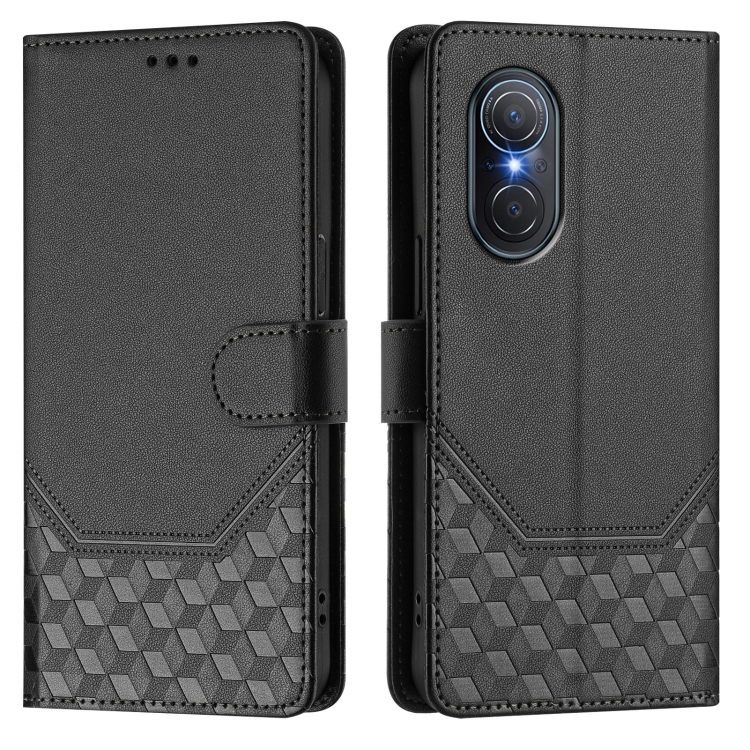 Funda de Cuero Rfid con Relieve en Panal para Huawei Nova 9 Se y Honor 50 Se (Negra)