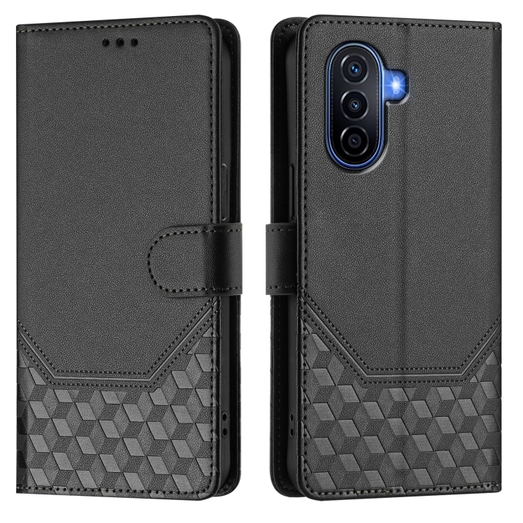 Funda de Cuero Rfid con Relieve en Panal para Huawei Nova Y70 Plus (Negra)