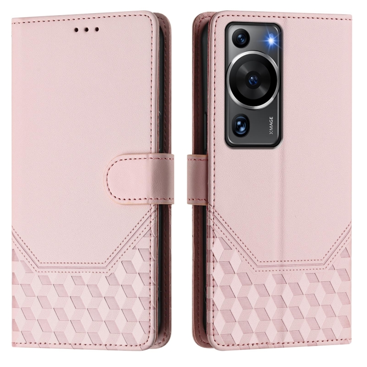 Funda de Cuero Rfid con Relieve en Panal para Huawei P60 y P60 Pro (Rosa)
