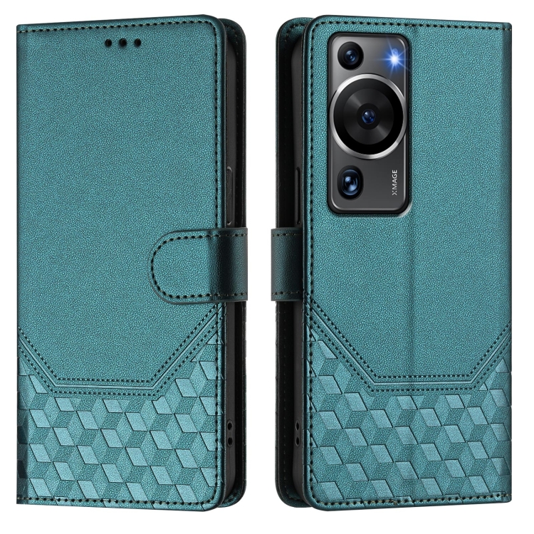 Funda de Cuero RFID con Relieve en Panal para Huawei P60/P60 Pro (Verde Pavo Real)