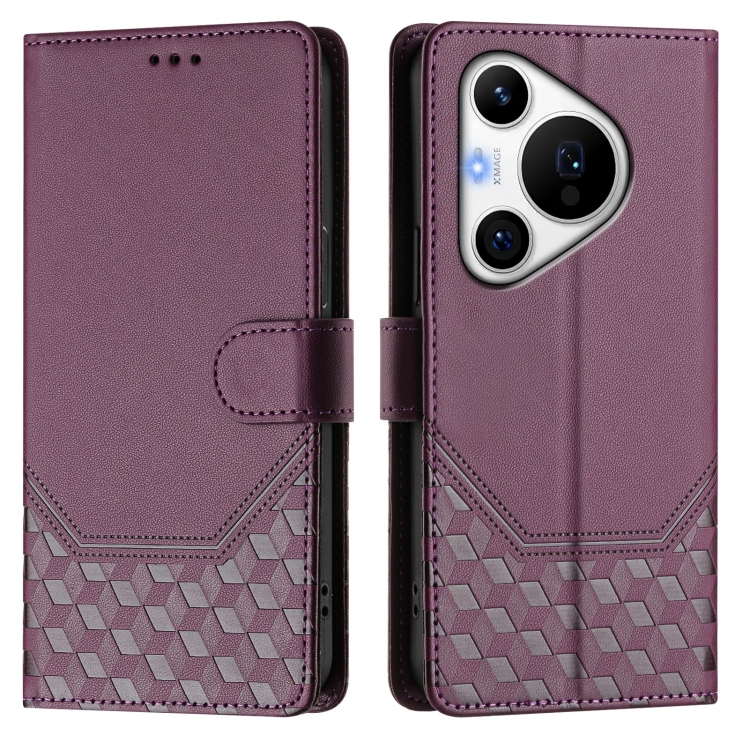 Funda de Cuero Rfid con Relieve en Panal para Huawei Pura 70 Pro/Pura 70 Pro+ (Violeta)