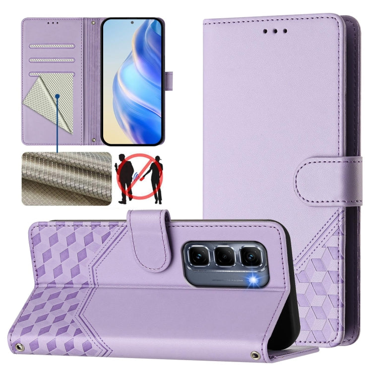 Funda de Cuero Rfid con Relieve en Panal para Infinix Hot 50 Pro+ 4G (Morado Claro)