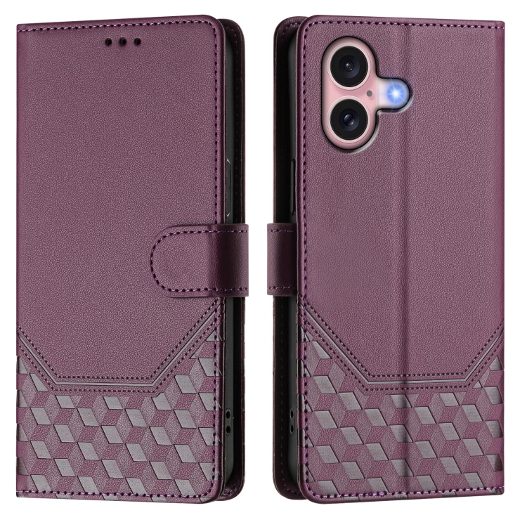 Funda de Cuero Rfid con Relieve en Panal para iPhone 16 Plus (Violeta)
