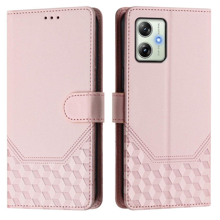 Funda de Cuero Rfid con Relieve en Panal para Motorola Moto G64 India/G54 5G India (Rosa)