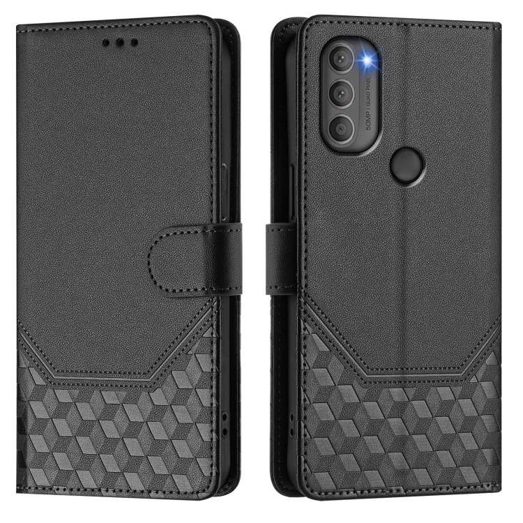 Funda de Cuero Rfid con Relieve en Panal para Motorola Moto G71 5G (Negra)
