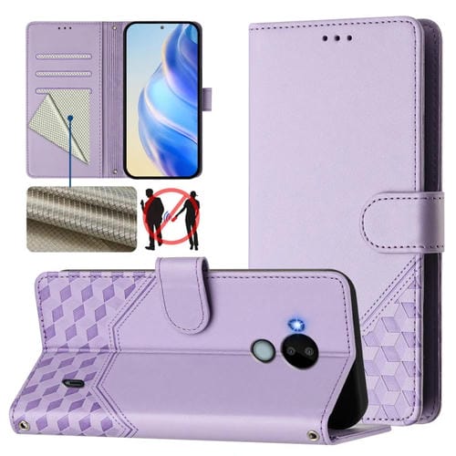 Funda de Cuero Rfid con Relieve en Panal para Nokia C30 (Morado Claro)
