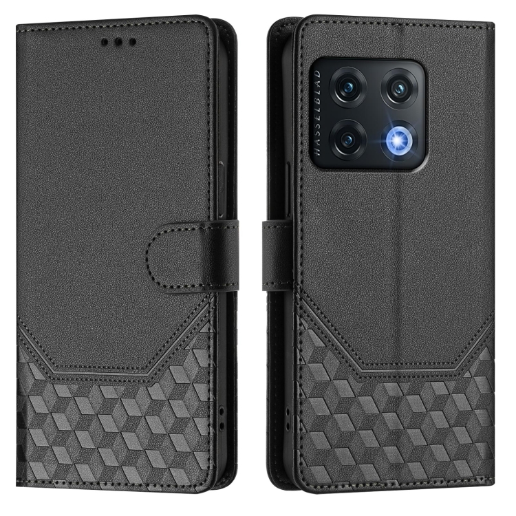 Funda de Cuero Rfid con Relieve en Panal para OnePlus 10 Pro 5G (Negra)