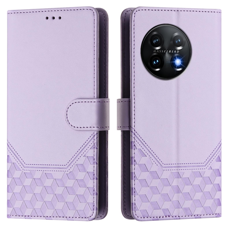 Funda de Cuero Rfid con Relieve en Panal para OnePlus 11 (Morado Claro)