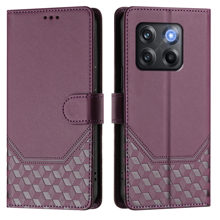 Funda de Cuero Rfid con Relieve en Panal para OnePlus Ace Pro 5G/10T 5G (Violeta)