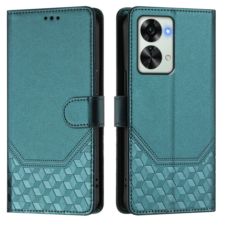 Funda de Cuero Rfid con Relieve en Panal para OnePlus Nord 2T (Verde Pavo Real)