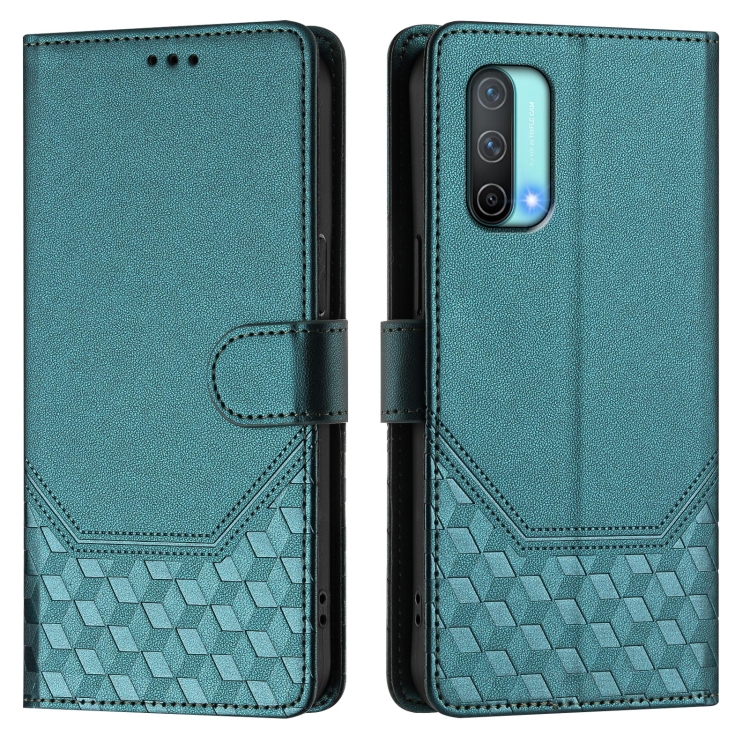 Funda de Cuero Rfid con Relieve en Panal para OnePlus Nord Ce 5G (Verde Pavo Real)