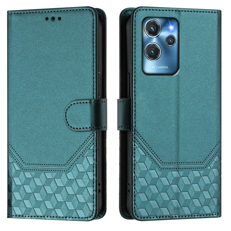 Funda de Cuero Rfid con Relieve en Panal para Oukitel C32 (Verde Pavo Real)
