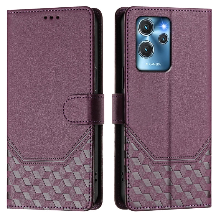 Funda de Cuero Rfid para Oukitel C32 con Relieve en Panal (Violeta)