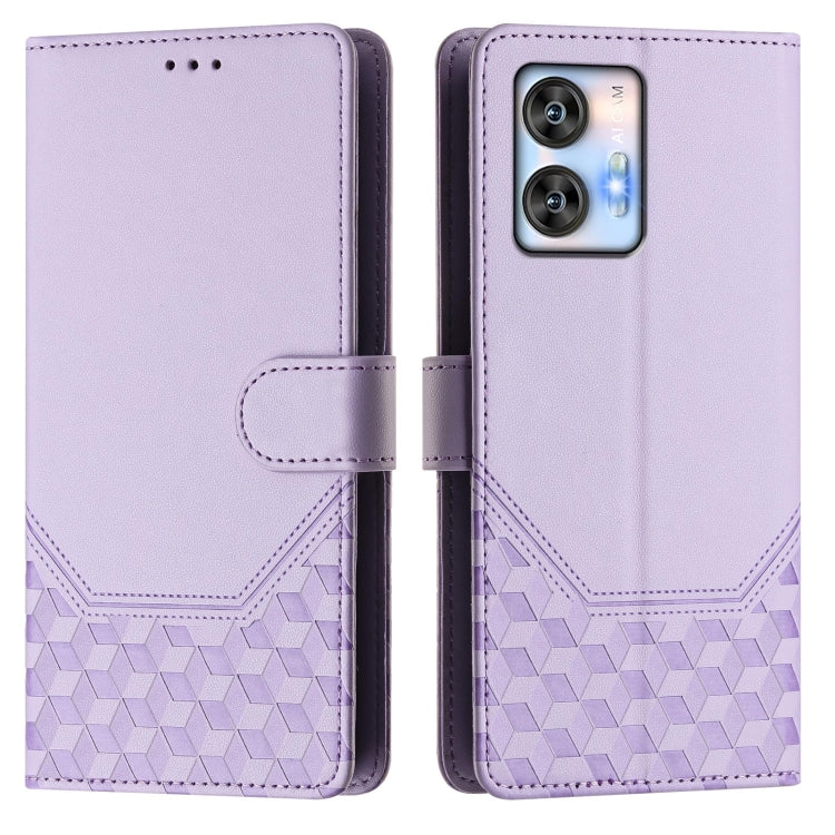Funda de Cuero Rfid con Relieve en Panal para Oukitel C35 (Morado Claro)