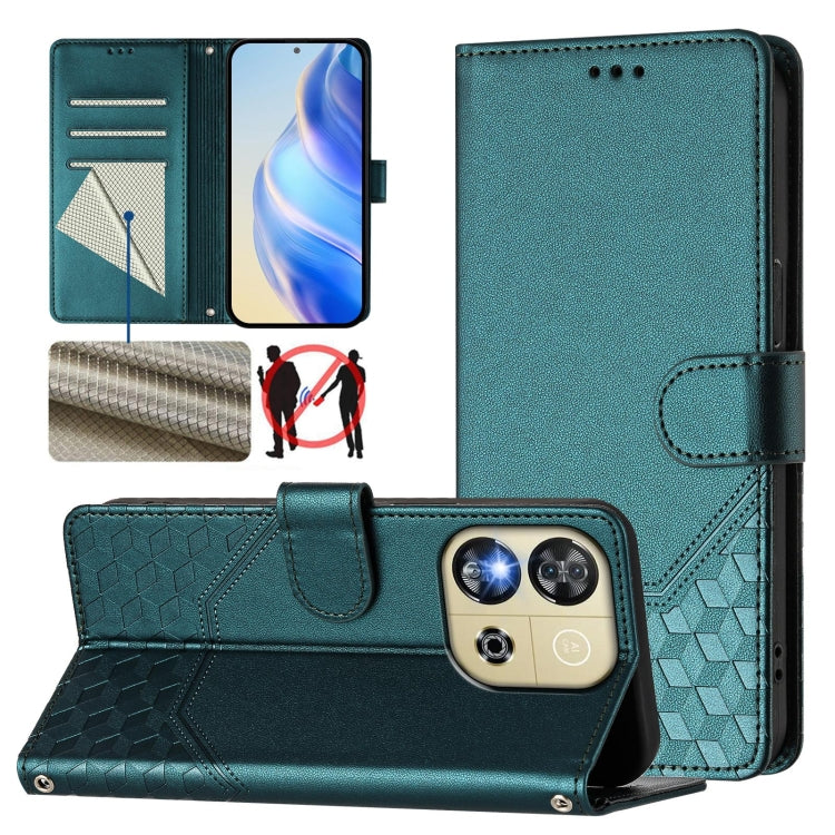 Funda de Cuero Rfid con Relieve en Panal para Oukitel C57S (Verde Pavo Real)