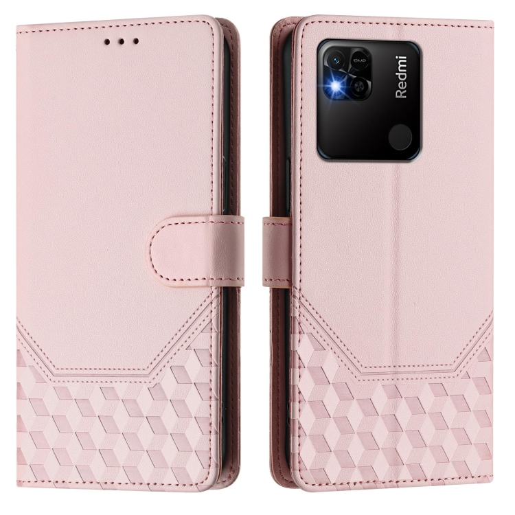 Funda de Cuero Rfid con Relieve En Panal para Redmi 10A/9C (Rosa)