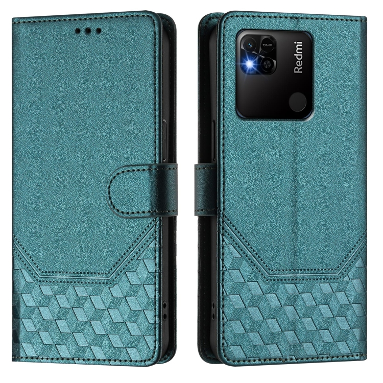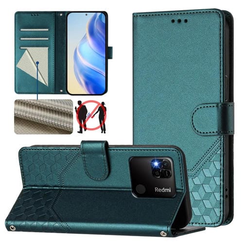 Funda de Cuero Rfid con Relieve En Panal para Redmi 10A/9C (Verde Pavo Real)
