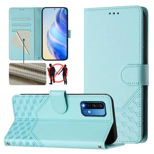 Funda de Cuero Rfid con Relieve En Panal para Redmi 9T Global (Verde Menta)
