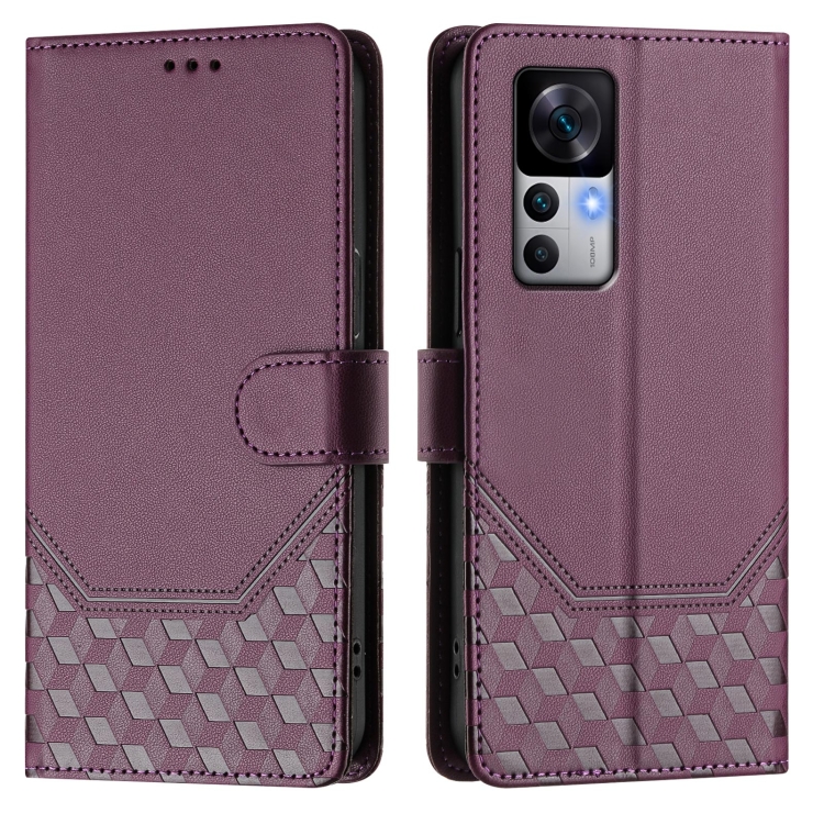 Funda de Cuero Rfid con Relieve En Panal para Redmi K50 Ultra (Violeta)