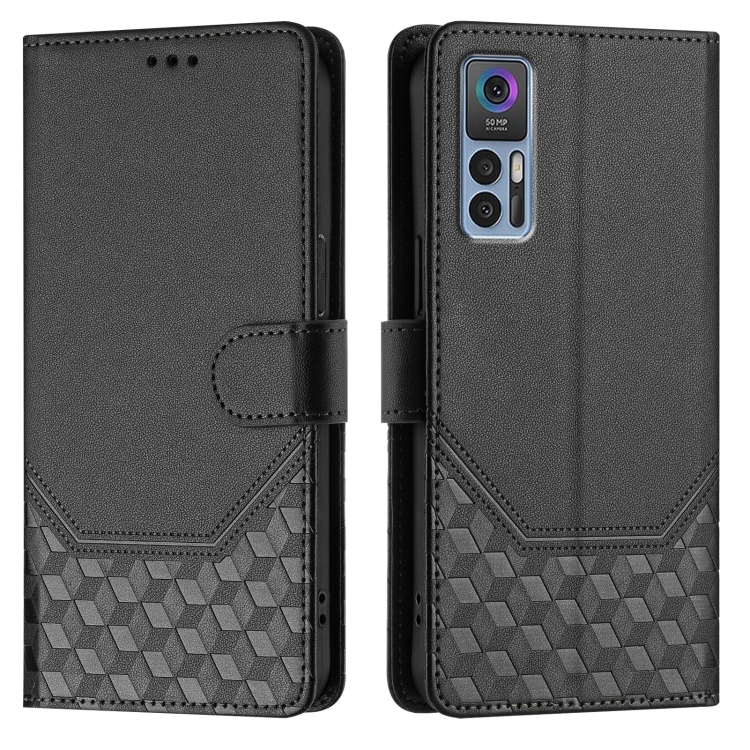 Funda de Cuero Rfid con Relieve en Panal para TCL 30 5G/4G/30+ (Negra)