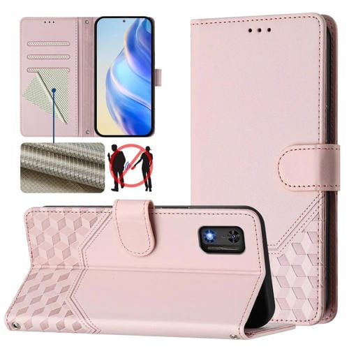 Funda de Cuero Rfid con Relieve en Panal para Tecno Pop 6C (Rosa)