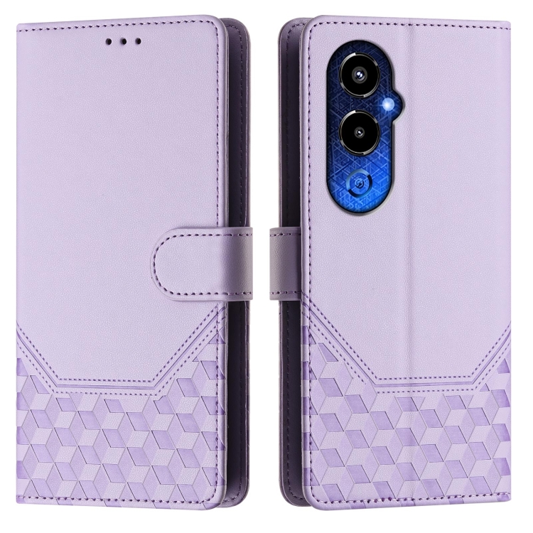 Funda de Cuero Rfid con Relieve en Panal para Tecno Pova 4 Pro 4G (Morado Claro)