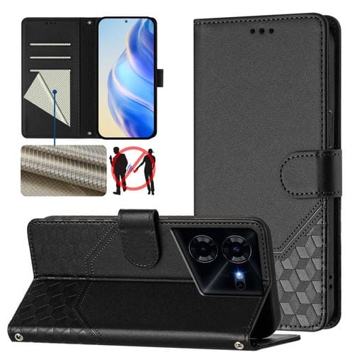Funda de Cuero Rfid con Relieve en Panal para Tecno Pova 5 Pro 5G (Negra)