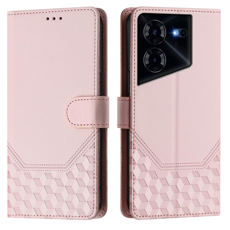 Funda de Cuero Rfid con Relieve en Panal para Tecno Pova 5 Pro 5G (Rosa)