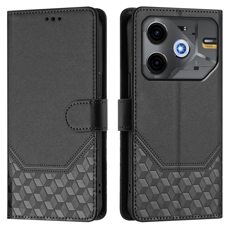 Funda de Cuero Rfid con Relieve en Panal para Tecno Pova 6 Neo (Negra)