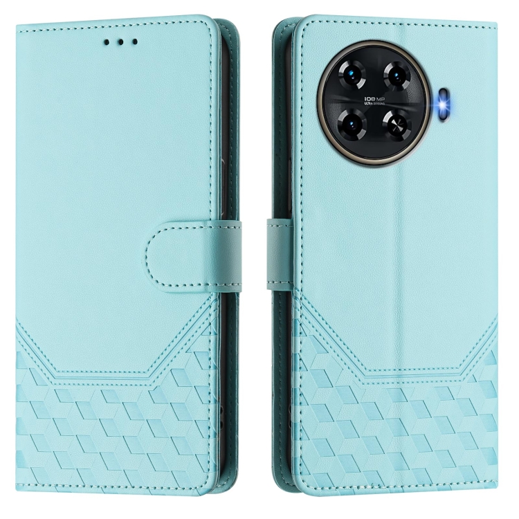 Funda de Cuero Rfid con Relieve en Panal para Tecno Spark 20 Pro+ 4G (Verde Menta)