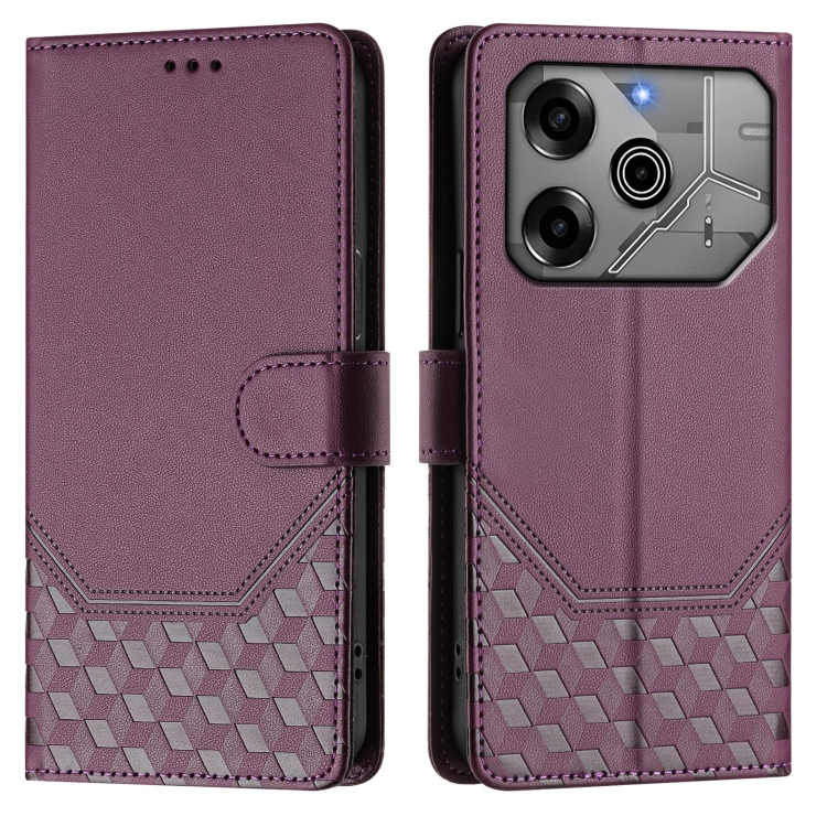 Funda de Cuero Rfid con Relieve en Panal para Tecno Spark Go 2021 (Violeta)